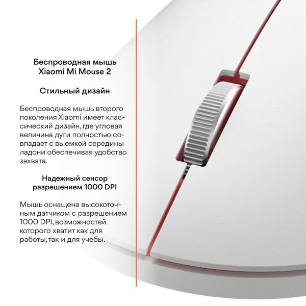 Новинка от Xiaomi! Беспроводная мышка Mi Wireless Mouse 2. Она бесшумная и работает год без подзарядки. Дизайнеры создали приятную матовую текстуру с помощью специальной краски, безопасной для кожи, чтобы устройство не скользило в руке, и сделали корпус полностью симметричным — мышь могут использовать и левши тоже. Новинка оснащена сенсором чувствительностью 1 000 dpi и работает бесшумно. Конструкция мыши непосредственно влияет на степень комфорта. Беспроводная мышь второго поколения Xiaomi имеет классический дизайн, где угловая величина дуги полностью совпадает с выемкой середины ладони обеспечивая удобство захвата. В правильной мышке важен не только вес, но и форма, поскольку она является одной из важнейших составляющих комфорта использования. Округлый корпус мыши Mi Wireless Mouse 2 просто не хочется выпускать из рук.