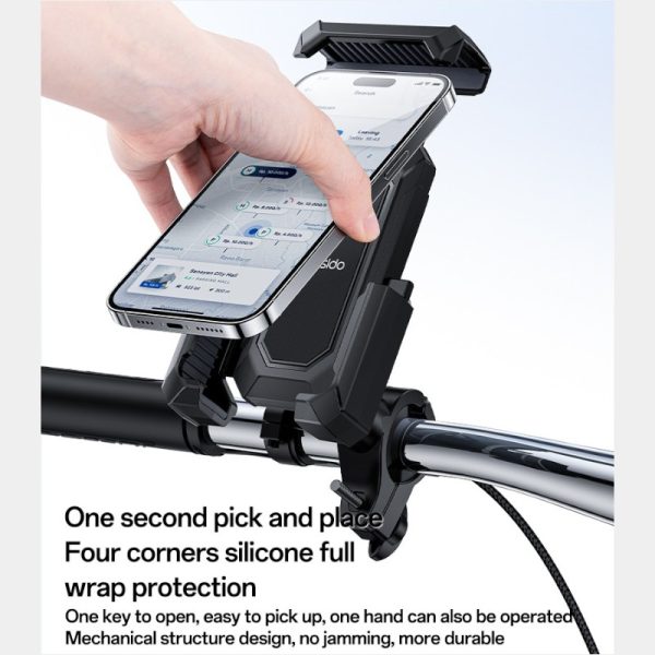 Держатель Yesido предназначен для установки на переднюю стойку велосипеда или мотоцикла и рассчитан на надёжное размещение устройства с диагональю 6.7″ (минимальная и максимальная заявленные диагонали совпадают — 6.7″). Конструкция выполнена из ABS-пластика согласно спецификации и фиксируется на стойке зажимным способом, что позволяет установить держатель в рабочее положение без сложных операций монтажа. Масса изделия — 400 г.