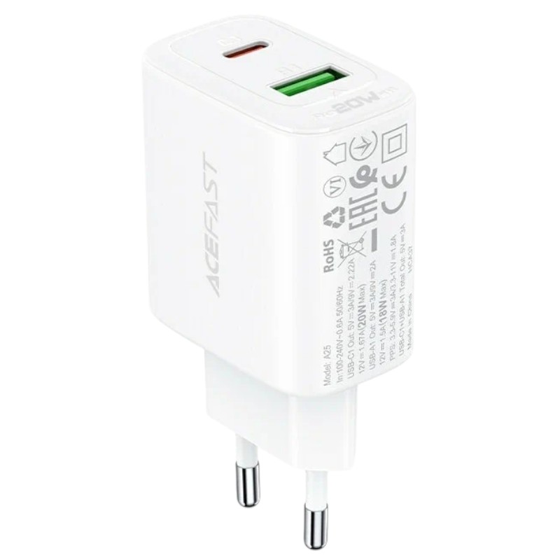 Сетевое зарядное устройство ACEFAST A25 20W — это компактный и при этом функциональный адаптер питания для современных смартфонов и гаджетов, который поддерживает большинство популярных протоколов быстрой зарядки и позволяет одновременно питать сразу два устройства. Модель относится к фирменной линейке ACEFAST, где основное внимание сделано на безопасности, совместимости и стабильной выдаче заявленной мощности.