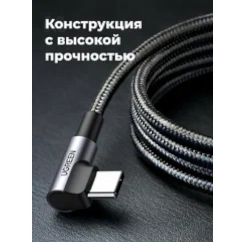 Кабель угловой UGREEN US323 Angled USB-C Cable Aluminum Case with Braided, 1м, цвет черный (70529)
