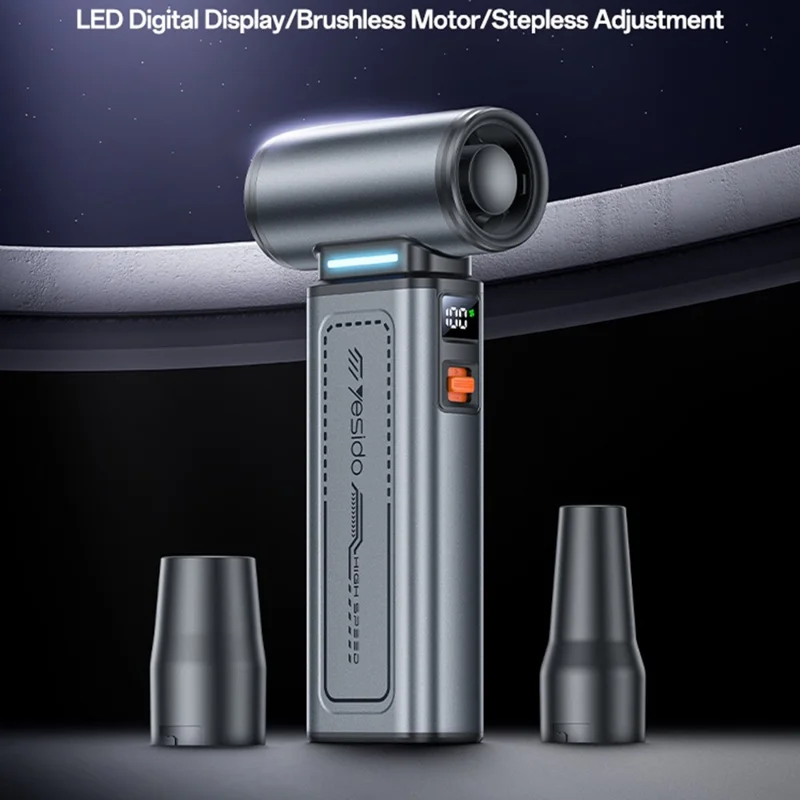 Yesido YF19 — это современный портативный турбо-воздуходув с бесщеточным мотором на 130 000 об/мин, созданный для эффективной очистки от пыли, мусора и грязи в любых условиях. Устройство подходит для ухода за автомобилем, уборки дома, офиса и обслуживания электроники, полностью заменяя одноразовые баллончики. Благодаря высокой мощности, плавной регулировке и ёмкому аккумулятору YF19 обеспечивает удобство и профессиональный результат.
