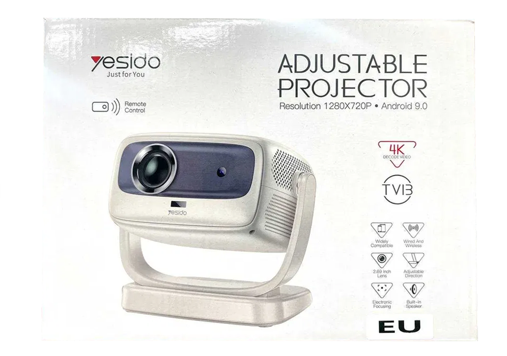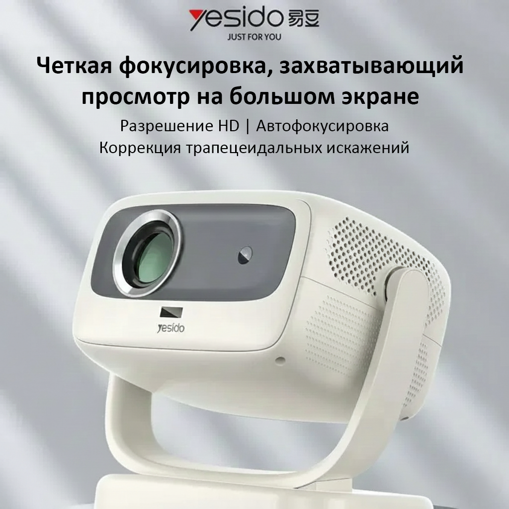 Yesido TV13 — это современный портативный проектор, который превращает любую стену в большой экран. Благодаря поворотной конструкции, автофокусировке и поддержке 4K-видео он идеально подходит для дома, офиса, путешествий и презентаций. Устройство автоматически настраивает резкость и обеспечивает чёткое изображение без ручных корректировок.