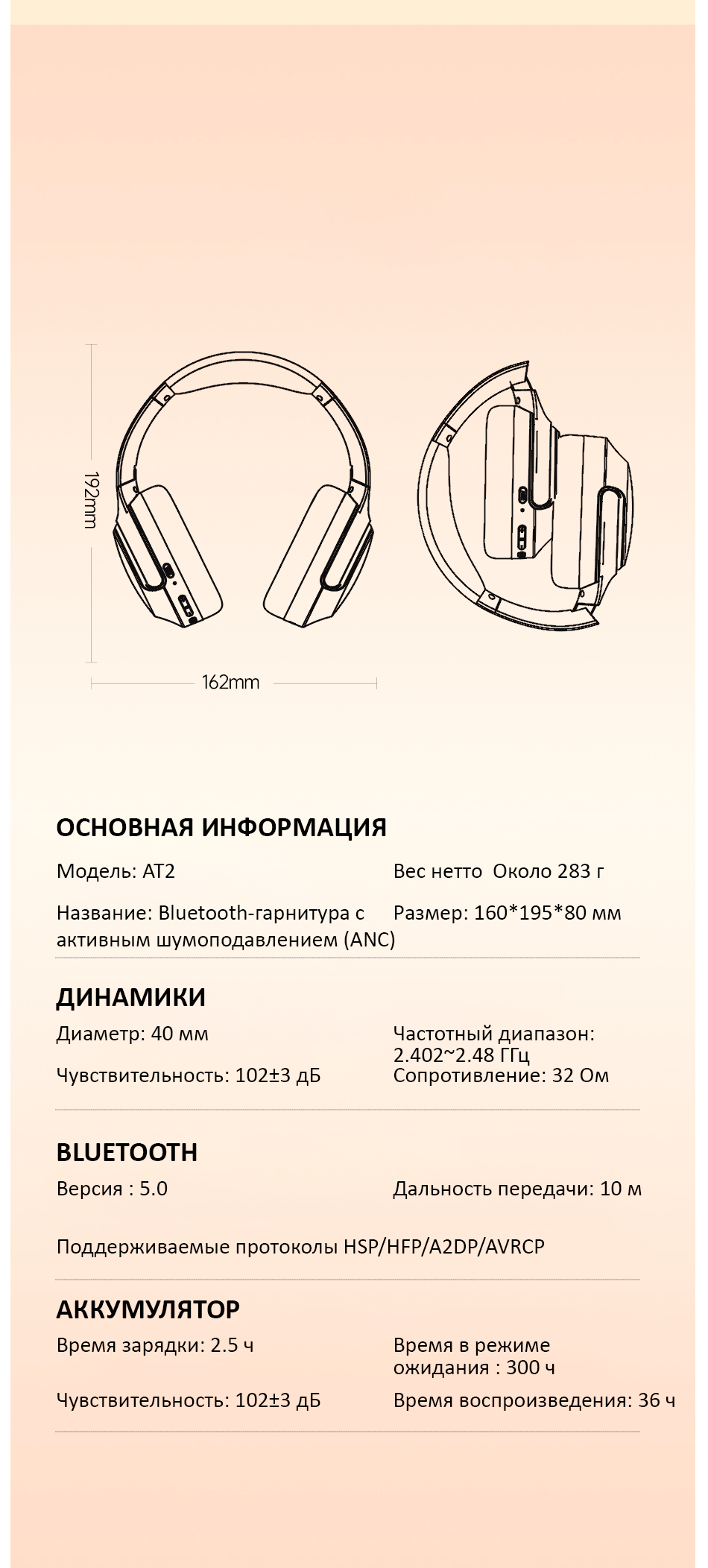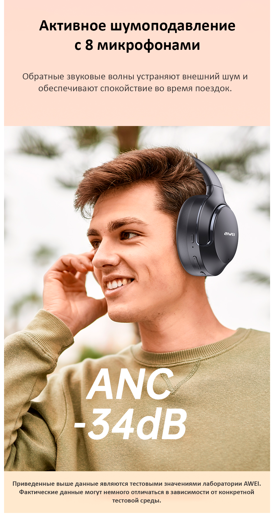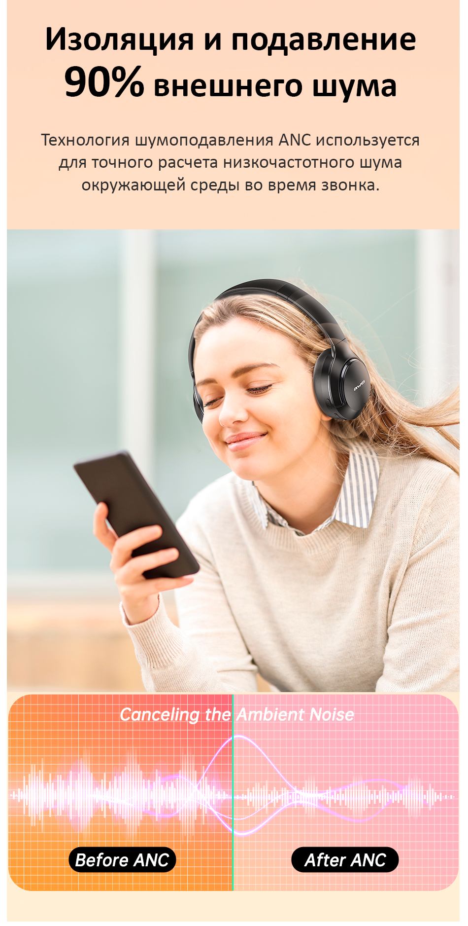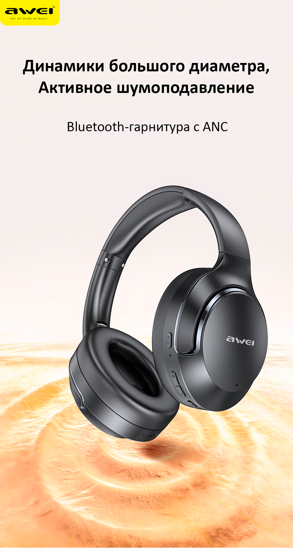 Наушники AWEI AT2 ANC — это Bluetooth-гарнитура с активным шумоподавлением (ANC), разработанная для обеспечения высококачественного звука и исключительного комфорта в течение всего дня.