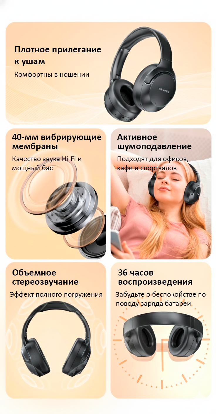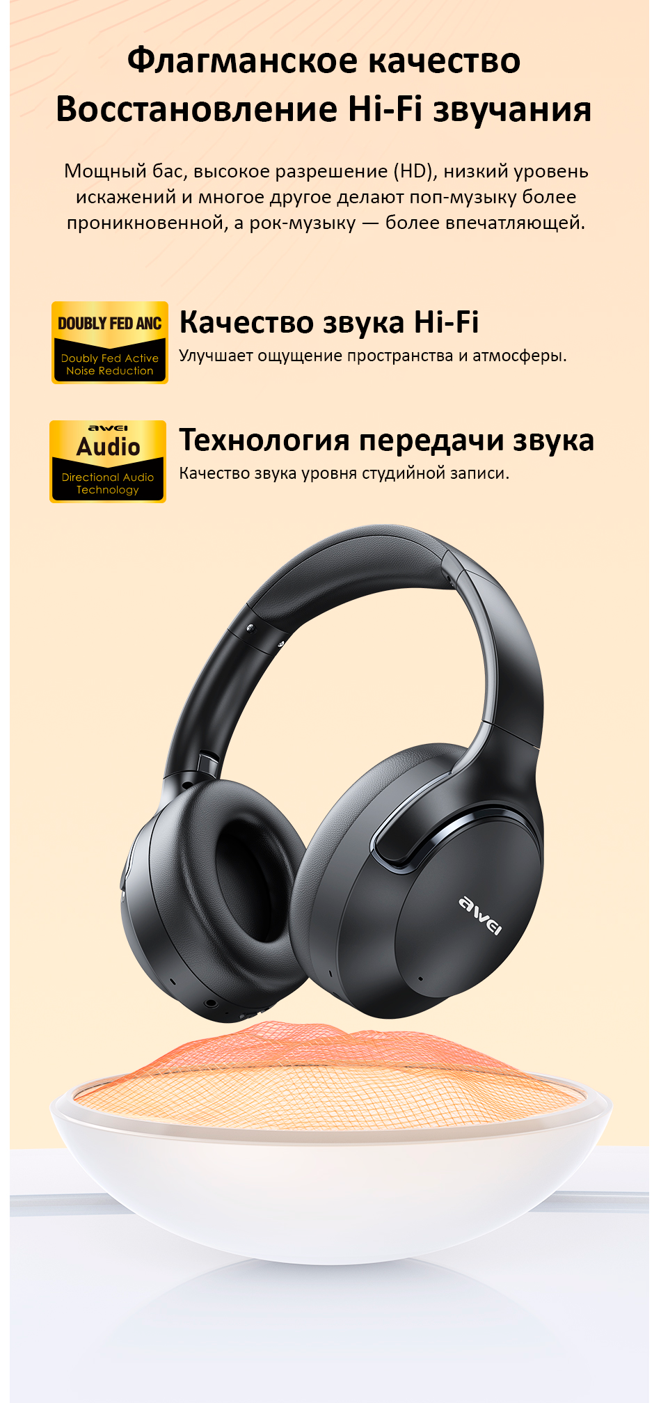 Технология передачи звука: Применяется фирменная технология Awei для достижения “записывающего уровня” качества звука.