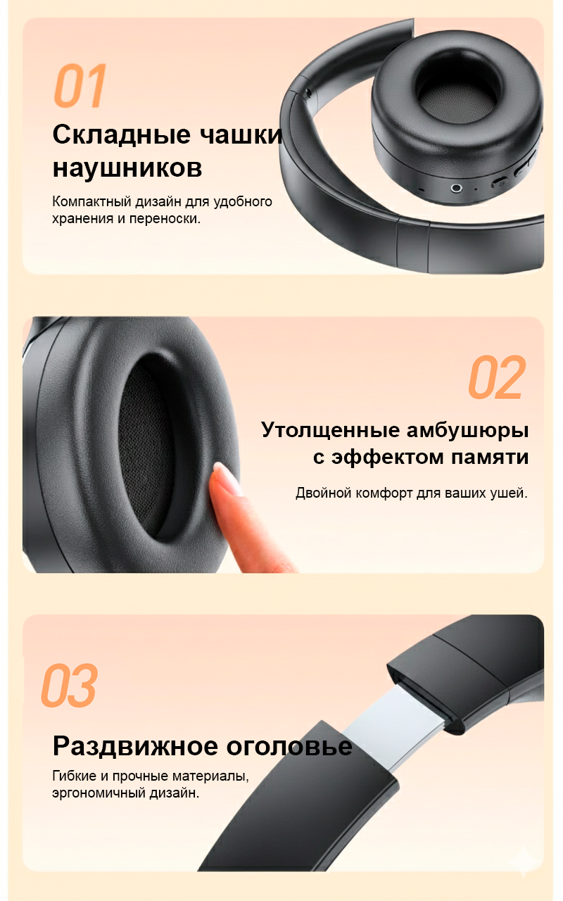 Утолщенные амбушюры с эффектом памяти: Обеспечивают двойной комфорт для ушей.