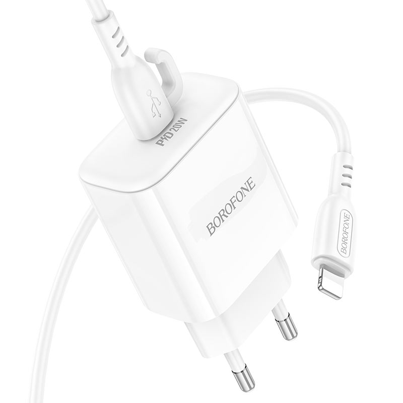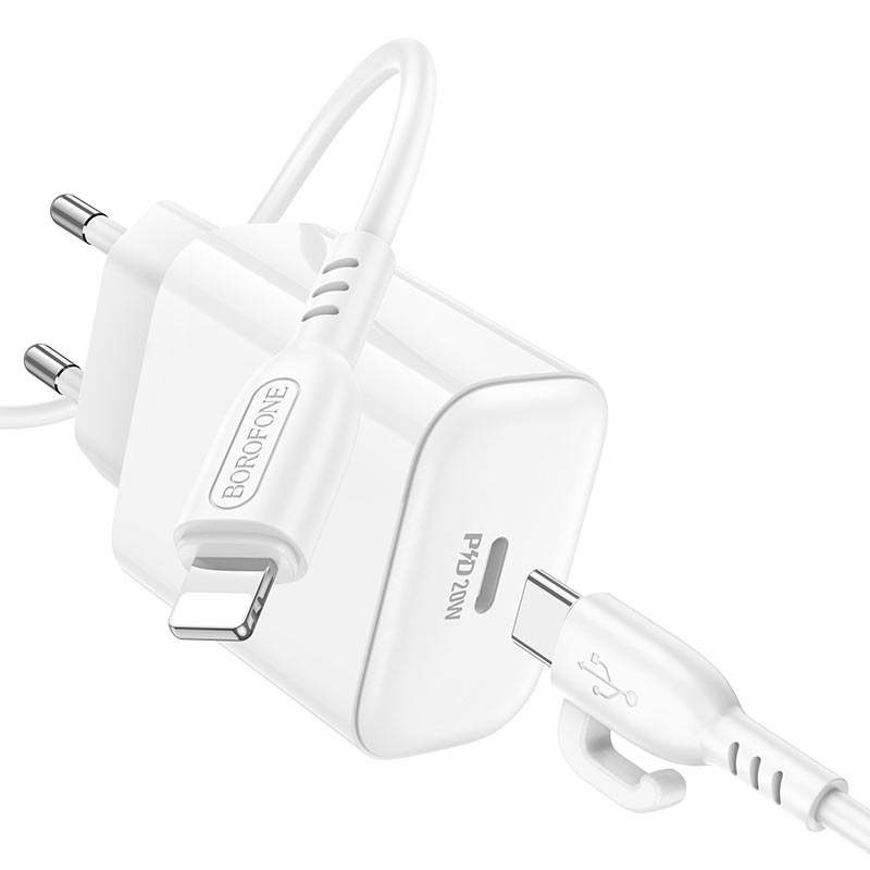 Сетевое зарядное устройство Borofone BA81A 20W + Кабель Type-C на Lightning