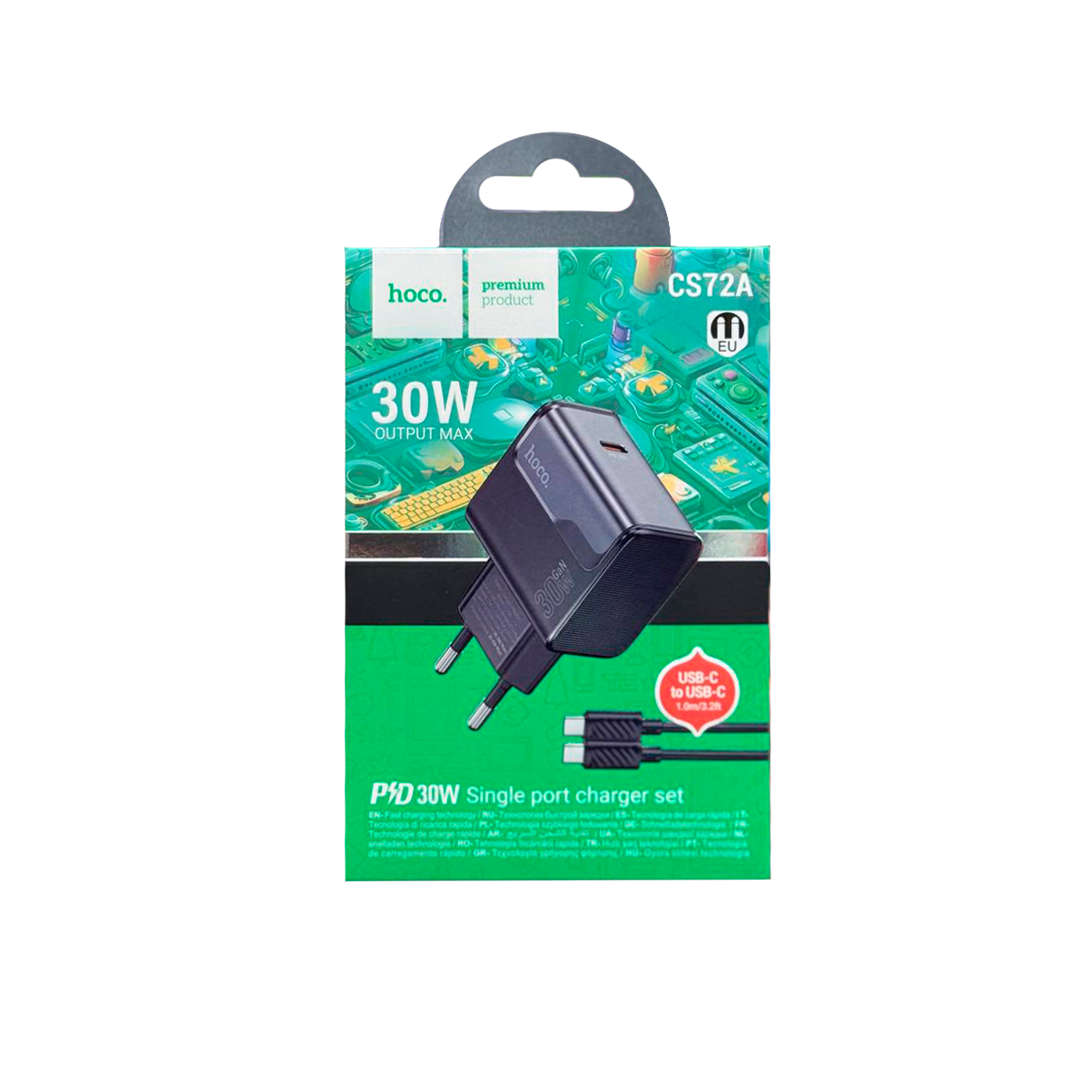 Комплектация: Сетевой адаптер Hoco CS72A (30W), кабель Type-C — Type-C.
