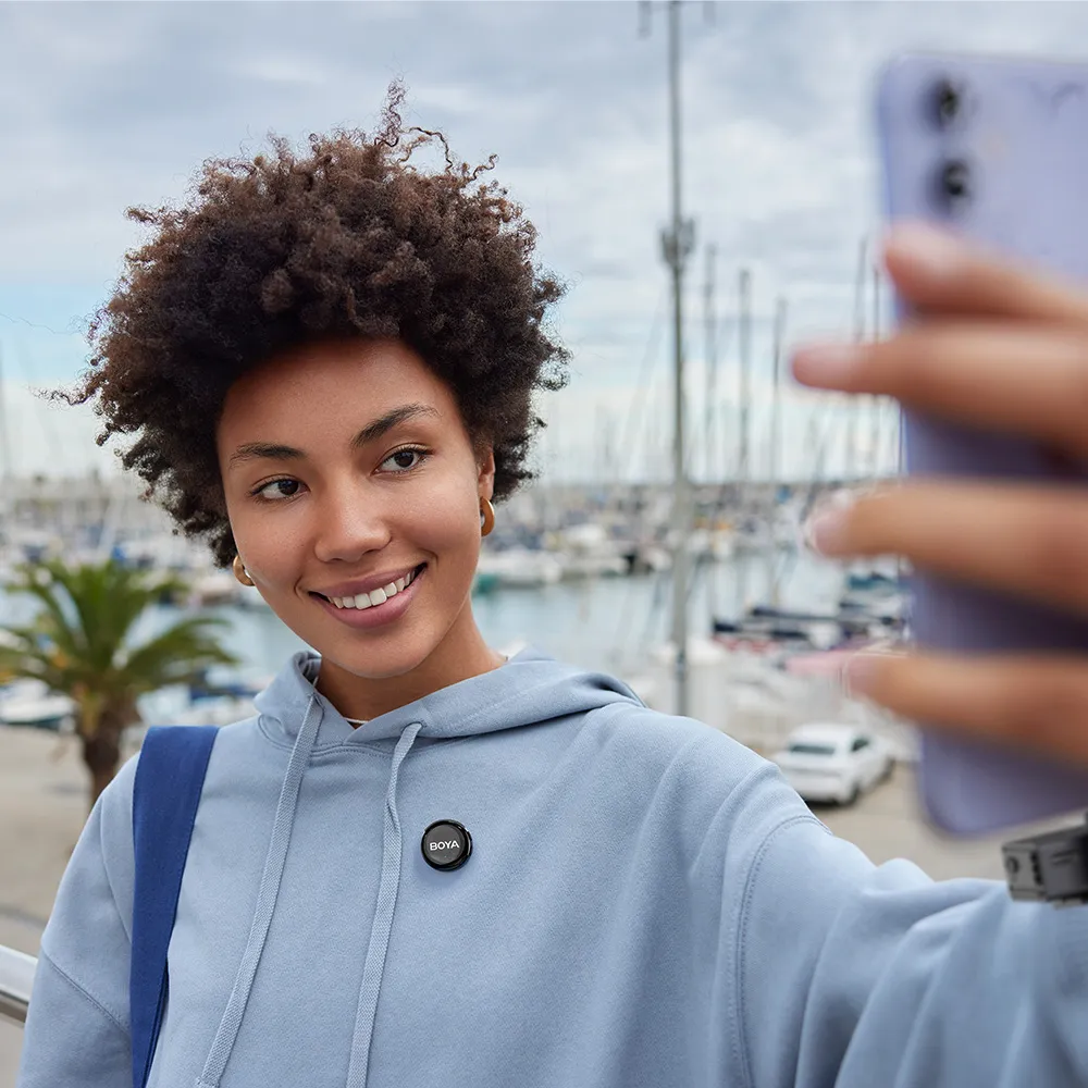 Невидимый звук Главное отличие BOYALINK 3 — это дизайн передатчиков. Микрофоны выполнены в форм-факторе “Button Size” (размером с небольшую пуговицу). Они крепятся на одежду с помощью мощного магнита или клипсы и практически незаметны на видео. Идеально для лайфстайл-блогеров, интервью и скрытой съемки.