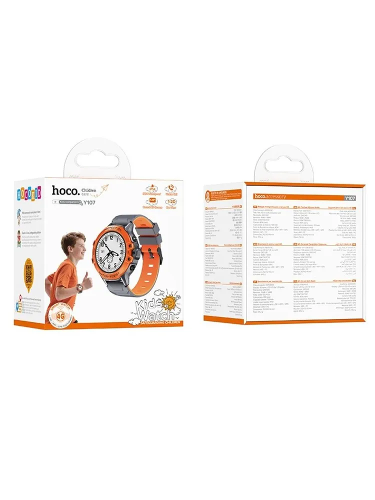 HOCO Y107 — детские часы на запястье с функциями связи, предназначенные для повседневного использования ребёнком. Согласно информации на упаковке, модель поддерживает работу в сети 4G и телефонные звонки, что помогает поддерживать контакт и быстро связаться при необходимости.